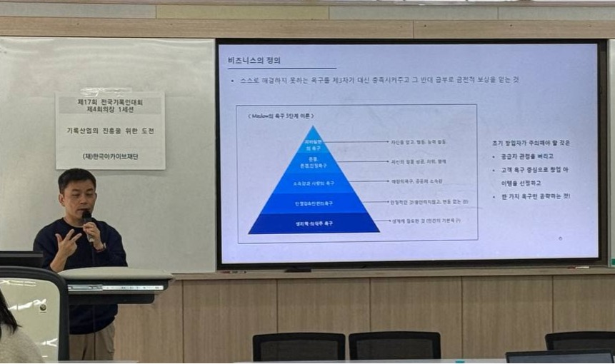 제17회 전국기록인대회의 한국아카이브재단 세션에서의 네 번째 발표는 아카이브 기반 창업에 대한 세심한 발표와 질의응답이 이어졌습니다. 한국 엑셀러레이터의 창시자인 크립톤의 양경준대표님이 수고해주셨습니다.